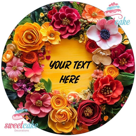 Elegant Flower Garden Edible Cake Topper – Add Your Personalized Message
