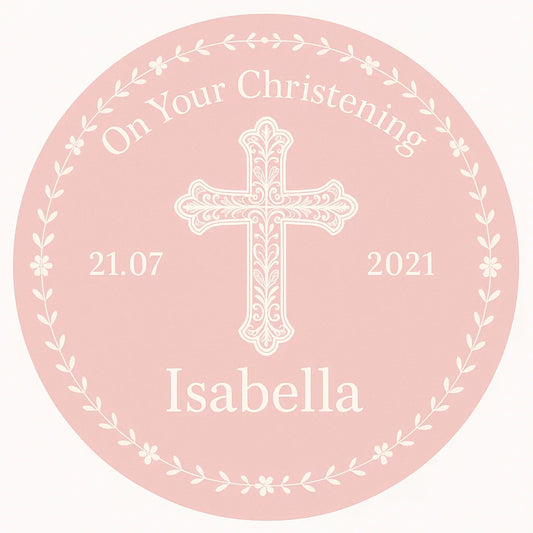 Personalised Christening or Baptism Cake Topper – Pink Cross Design – Wafer Card or Icing Sheet